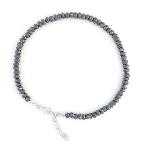 Bracciale in argento e spinello nero lunghezza cm 20 + 3 cm di prolunga
