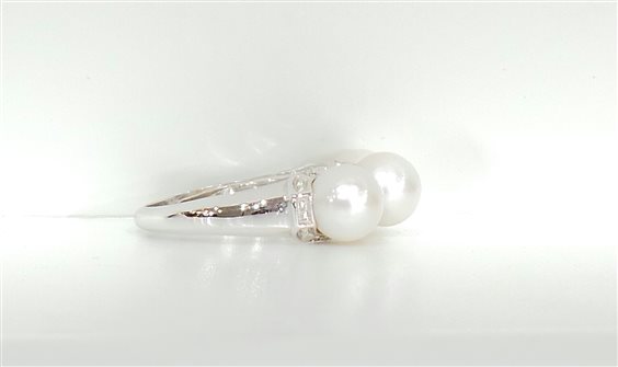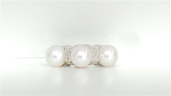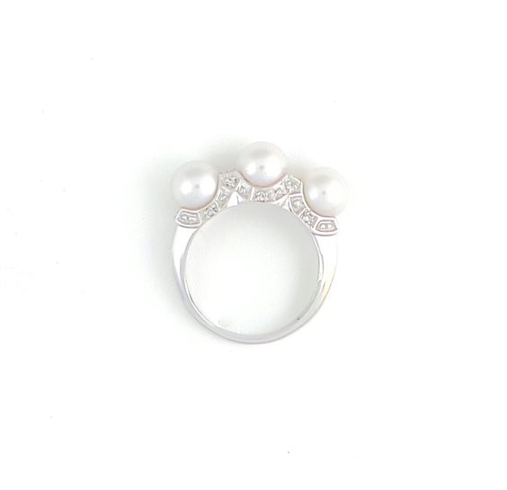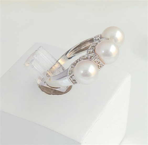 Anello in oro bianco 18 kt con 3 perle diam 7 mm e diamanti naturali mis 15 gr 5.4