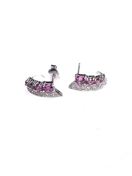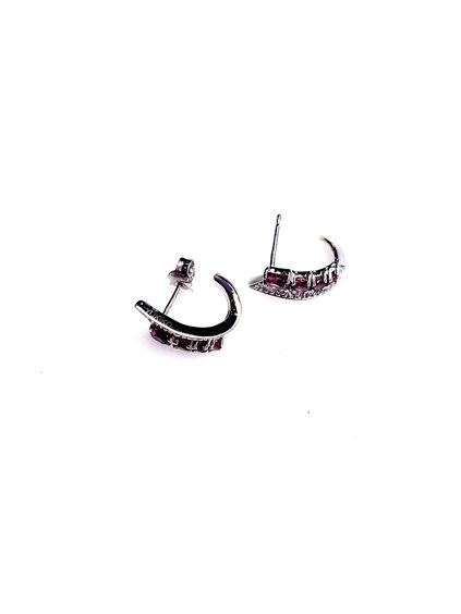 Orecchini YUKIKO ORO BIANCO 18KT. con 12 diamanti taglio brillante rotondo colore H purezza VVS1 di Kt. 0.06 e rodolite taglio tondo di mm. 2,-2,5- 3- 4- attacco a paletto lunghezza cm. 1,5 peso gr. 3.95